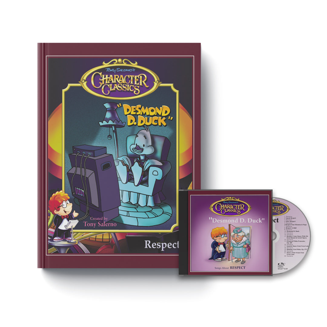 In the Sing-a-Story book “Desmond D. Duck,” kids will dive into the story of Desmond D. Duck and how he has no respect for anyone or anything, and his beak is always getting him into trouble. After losing all of his friends and being grounded for a week, Desmond D. Duck learns to watch his beak before he speaks. Kids will be amused as they may see themselves in the character of Desmond D. Duck with his lack of respect. They will learn that mouthing off with wise quacks or a disrespectful attitude will not get them their desired result! This Sing-a-Story book is based on the songs from award-winning Respect Character Classics sound recordings.
